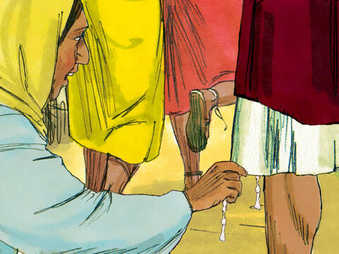 44 예수의 뒤로 와서 그의 옷 가에 손을 대니 혈루증이 즉시 그쳤더라