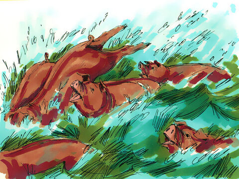 33 귀신들이 그 사람에게서 나와 돼지에게로 들어가니 그 떼가 비탈로 내리달아 호수에 들어가 몰사하거늘
